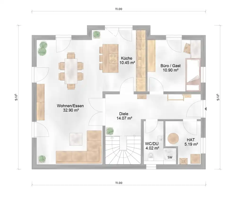 Klassische Architektur gepaart mit modernen Stilelementen lässt Ihr neues Traumhaus zum Hingucker werden. Die funktionellen Grundrisse im Erd- und Dachgeschoss runden dabei das Gesamtpaket auf 127 m² Wohnfläche ab. Dabei können die Grundrisse noch variabel an Ihre Wünsche und Bedürfnisse angepasst werden. Ob vier oder fünf Zimmervariante, klassische Grundrissvariationen oder modernes offenes Wohnen.