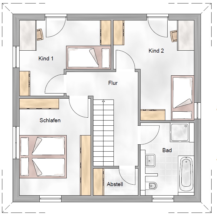 Das zweite Geschoss bietet Platz für die Kinder, die Eltern, zum Entspannen, zum Arbeiten oder auch für Ihr Hobby.