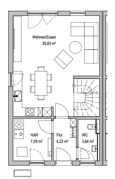 Die Einrichtungsgegenstände und Bodenbeläge (außer Bodenbeläge in Bad und WC) sind nicht in unseren Leistungen enthalten und müssen, wenn gewünscht, extra bestellt werden.