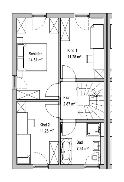 Modernes Wohnen auf drei Ebenen. Die Wohnebene mit dem großzügigen Wohn-Ess-Bereich sowie die Küche finden Sie im Erdgeschoss. Dieses wird ergänzt durch ein Gäste-WC und einen Haustechnikraum. Wenn Sie sich für einen Keller entscheiden, dann wird der Haustechnikraum in den den Keller verlegt. Wie Sie die zweite Ebene mit drei Zimmern und Ihrem Bad nutzen möchten, dass entscheiden Sie selbst. Im Dachgeschoss befindet sich Ihre dritte Wohnebene. An dieser Stelle können Sie sich voll entfalten, ob Arbeitsbereich, Büro, Gästebereich oder ein kleines Apartment für die großen Kinder, Ihnen stehen alle Optionen offen.
