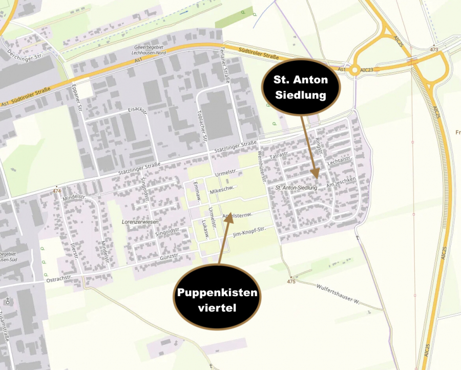 Die St.-Anton-Siedlung nahe dem Puppenkistenviertel zählt zu den ruhigen und gewachsenen Wohnlagen im Osten von Augsburg. Gepflegte Wohnstraßen, viel Grün sowie eine familienfreundliche Bebauung prägen das direkte Umfeld. Die Mikrolage überzeugt durch eine angenehme Nachbarschaft, kurze Wege zu Nahversorgern, Kindergärten, Schulen sowie zu Freizeit- und Erholungsflächen.