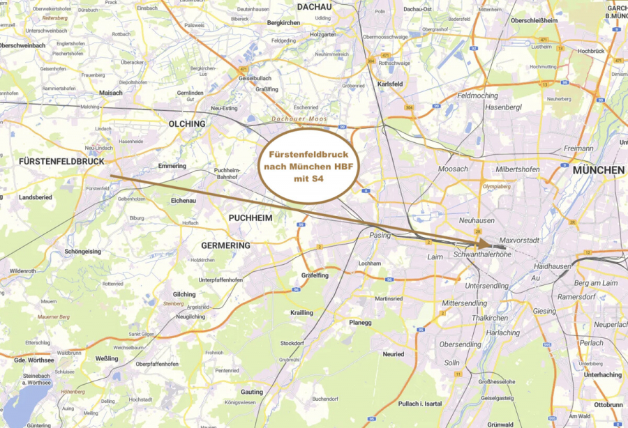 S-Bahn (S4) bis München Hbf: ca. 29 Min. (Direktverbindung)